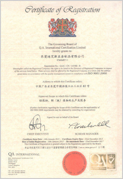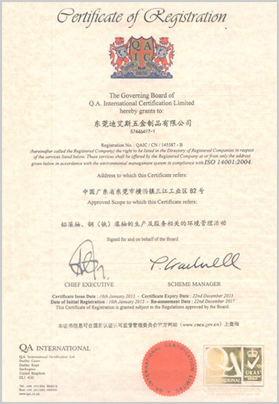 We hold and continuously maintain ISO9001-2008 quality management system certificate and ISO14001-2004 environmental management certificate from International Organization for Standardization