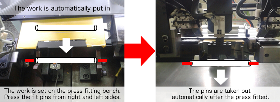 | Effects | One worker needs to be working per press fitting machine. | No worker has to stay and work at the press fitting machine anymore.A reduction in labor and a shortened number of seconds per process. |